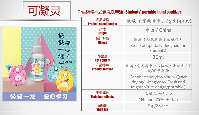 學生裝便攜式免洗洗手液